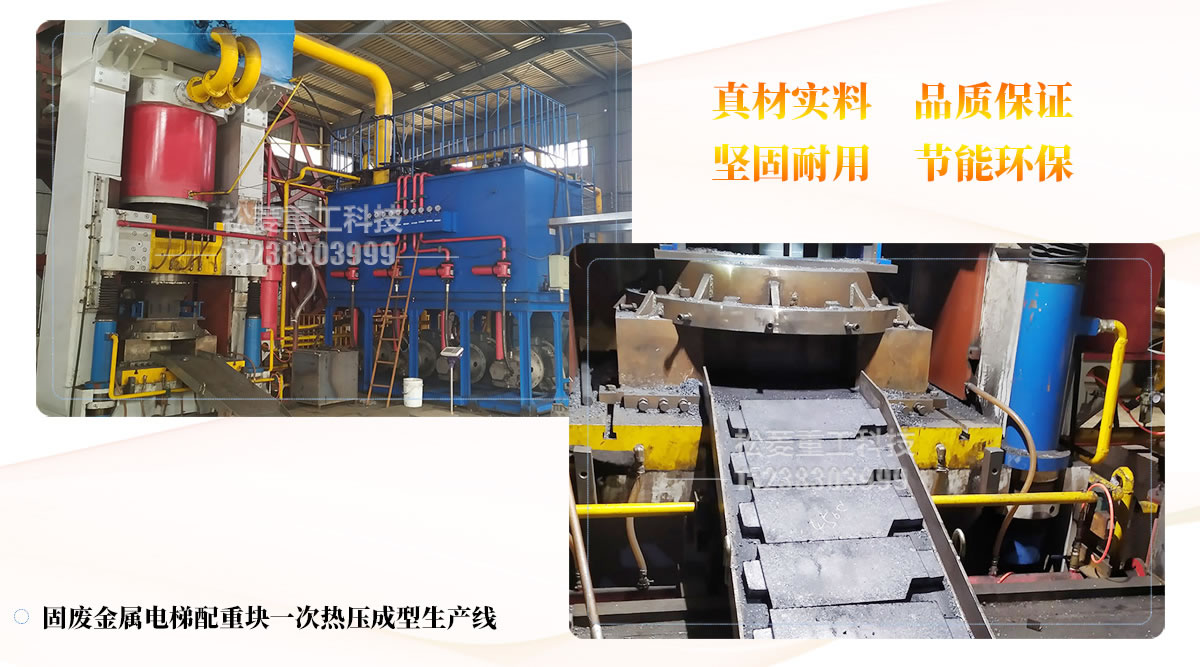 固廢金屬電梯配重塊一次熱壓成型生產(chǎn)線對(duì)鋼渣、粒子鋼、鋼屑、金屬破碎料、鋸床料、磨床料、生鐵銷、鐵精粉、氧化鐵皮、印尼紅土鎳礦等這些物料都能輕松達(dá)到不錯(cuò)的展示效果。